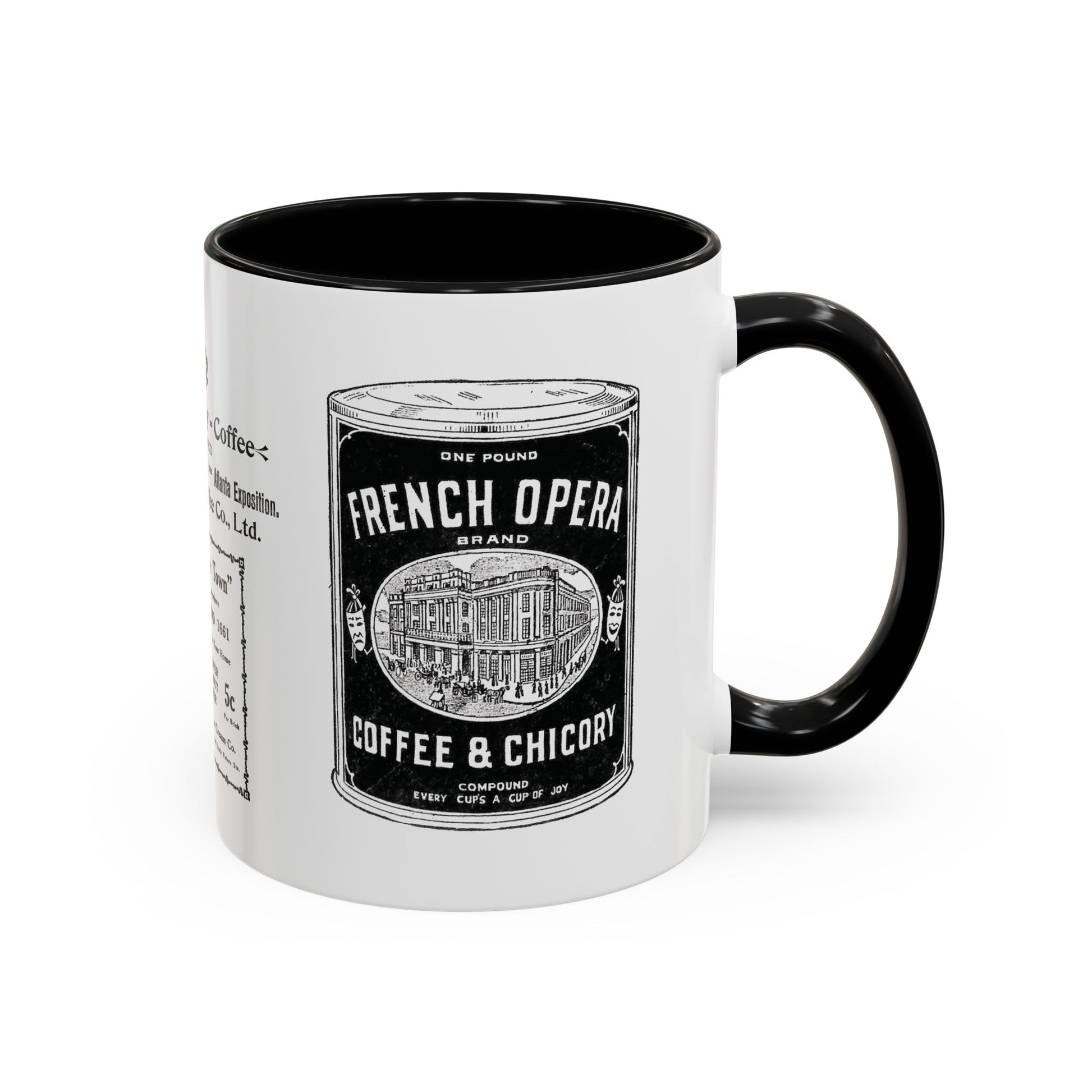 The French Opera coffee mug is from a label salvaged from a print shop that was once used as an advertisement.
