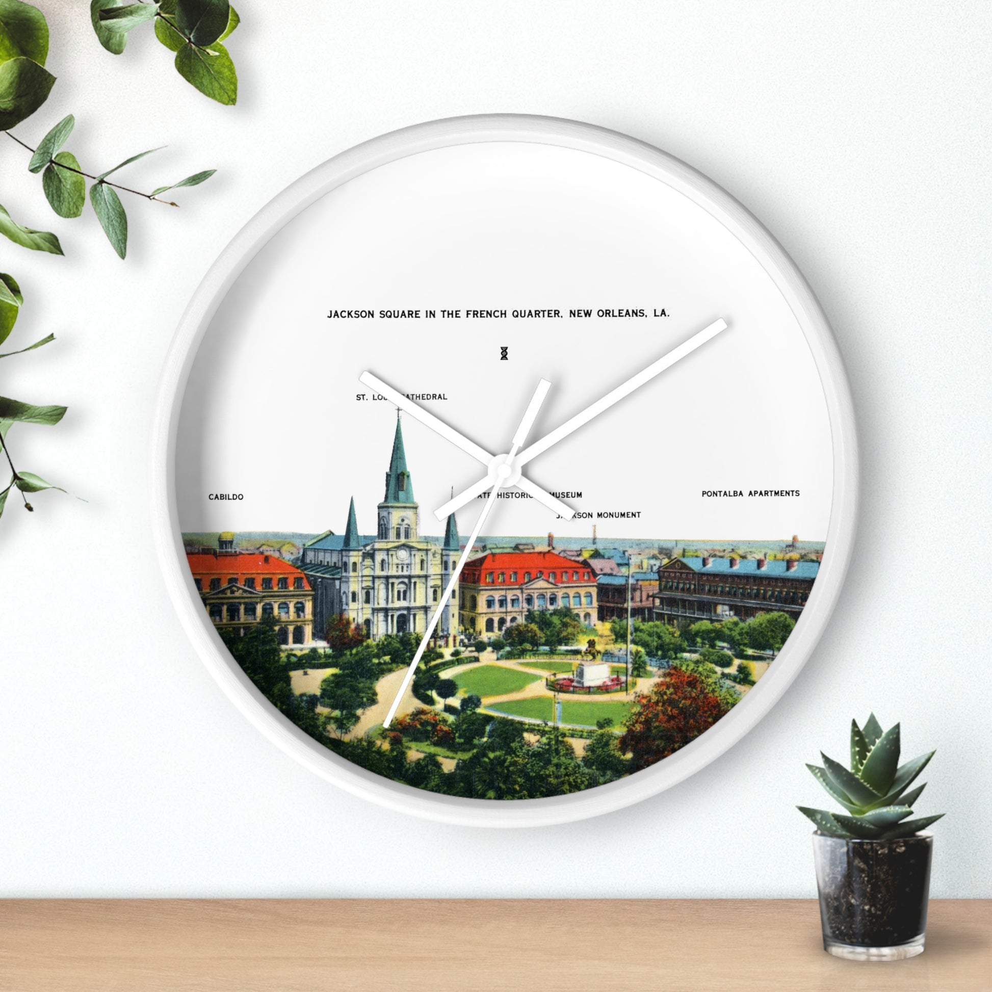 Jackson Square New Orleans Wall Clock — Vintage French Quarter Scenic Clock
